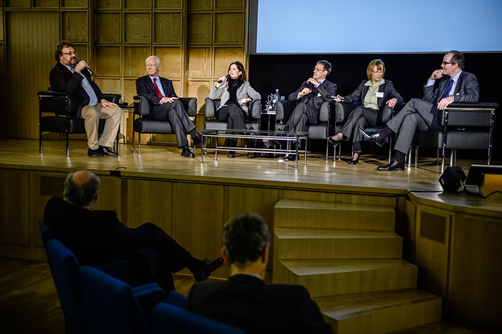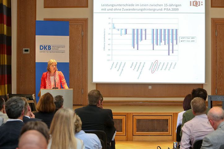 Prof. G. Bäcker und Prof. R. Schnabel sowie Podium mit C.Linnemann, M.Kurth, M.Rosemann u. Prof. G.Kremer, Caritas. 02./03. Juni 2014 | Eliteforum Bildung„Chancengleichheit“ – DKB – Schloss LiebenbergKeynotes von Prof. Wassilios Fthenakis, Didacta und Dr. Heike Kahl, DKJS.